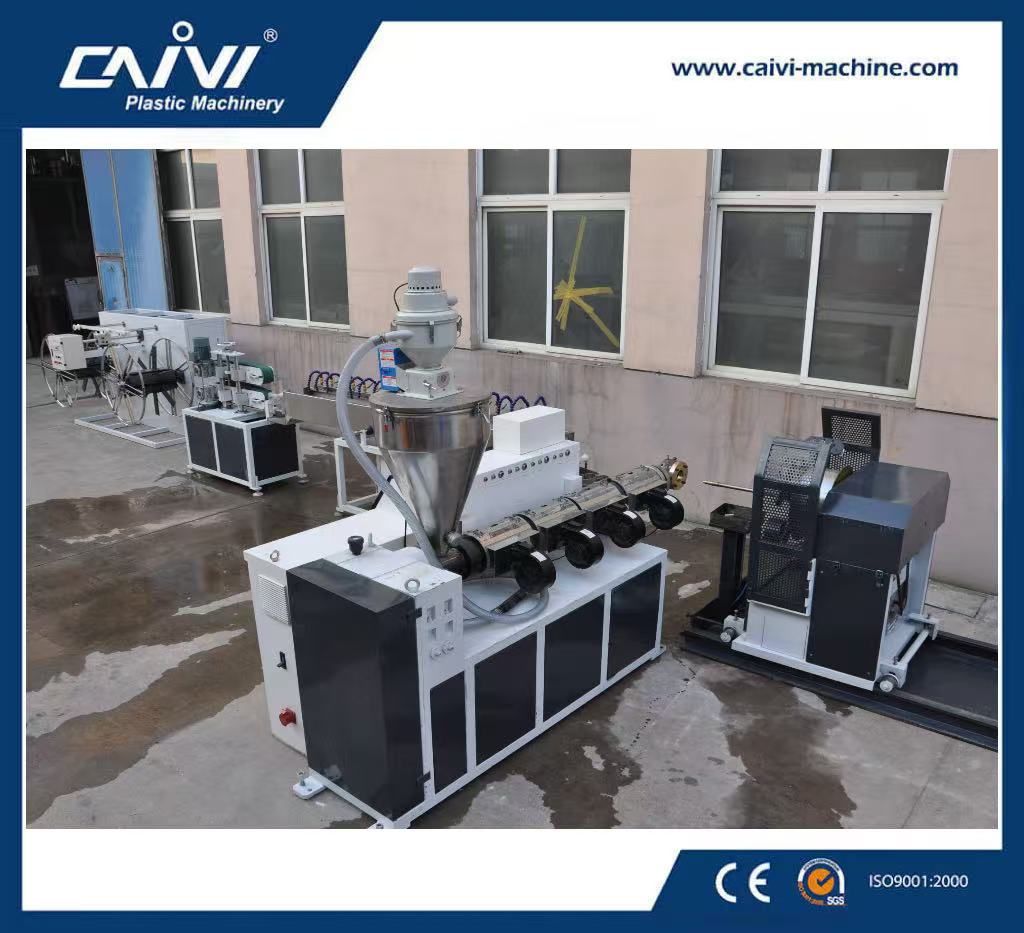 原料+助劑配制 → 混合 → 造粒 → 輸送上料 → 單螺桿擠出機 → 鋼絲成型裝置 → 擠出模具 → 噴霧冷卻水箱 → 履帶牽引機 → 收卷機 → 成品檢測包裝